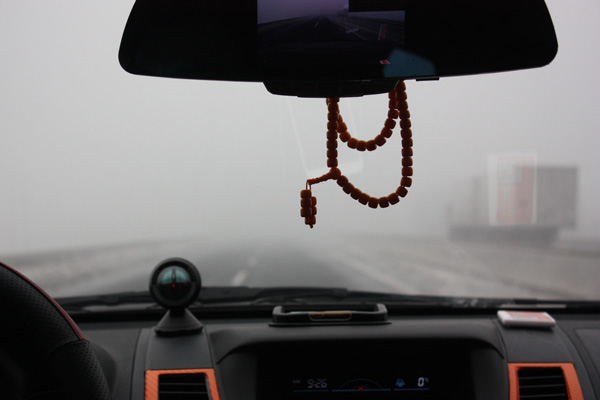 8點10分左右集合完畢出發(fā)前往三門峽。自駕車隊行駛途中,由于當(dāng)天天氣狀況不好——大霧,有許多路段能見度不足50米。我們的資深領(lǐng)隊坤哥、劉隊一點都不敢含糊,作為頭車,一直用對講機(jī)向后面的車輛匯報前方的路況,以確保車隊的行駛安全。