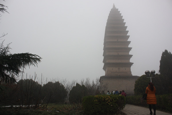 29日,吃過早飯,8點鐘車隊向天鵝湖進(jìn)發(fā)。大霧,又是個大霧天,參加過三門峽旅游局與我們河南省自駕旅游系會聯(lián)合主辦的白天鵝旅游季啟動儀式,車隊轉(zhuǎn)而前往寶塔寺參觀。