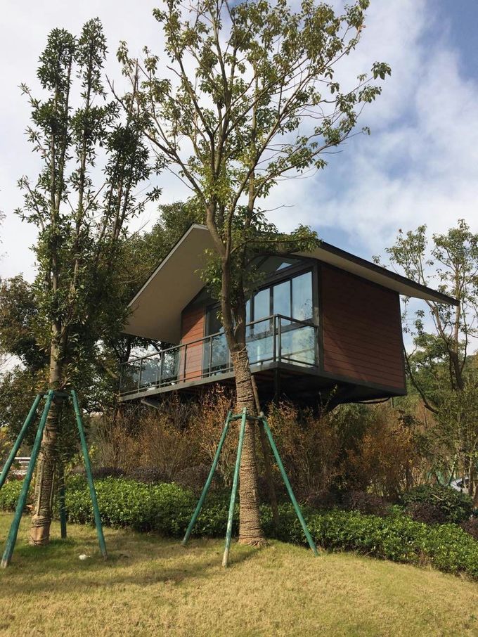 營地按功能劃分為房車露營區,木屋住宿區、帳篷露營區、餐飲娛樂區、戶外燒烤區、拓展體驗區、奇瑞汽車展示區、房車露營用品展銷區以及森林探險項目,并有籃球場、網球場、游泳池和會議室等配套設施。營地可容納35輛自駕房車,86輛營地房車和40個可移動生態木屋,同時滿足約600人戶外活動、露營休閑、旅游度假的需求。營地內設服務中心,提供接待、餐飲、購物、會議、娛樂等多樣化的服務。