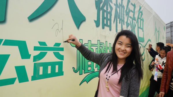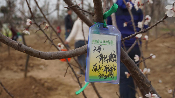 植樹(shù)完畢,大家寫(xiě)上自己的名字留念,接下來(lái)還有互動(dòng)游戲。