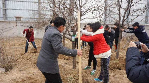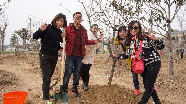 大合照,準(zhǔn)備完畢,開(kāi)始植樹(shù)啦