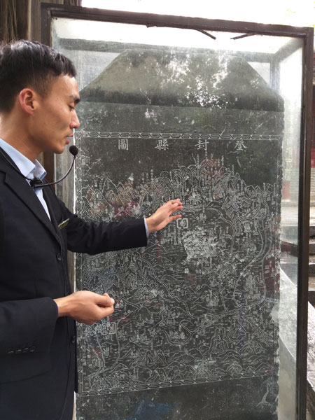 明代萬歷年間(1593)石刻“登封縣地圖”,據導游介紹,此碑雖然距今有400多年的歷史,但字跡清楚,線條明晰。