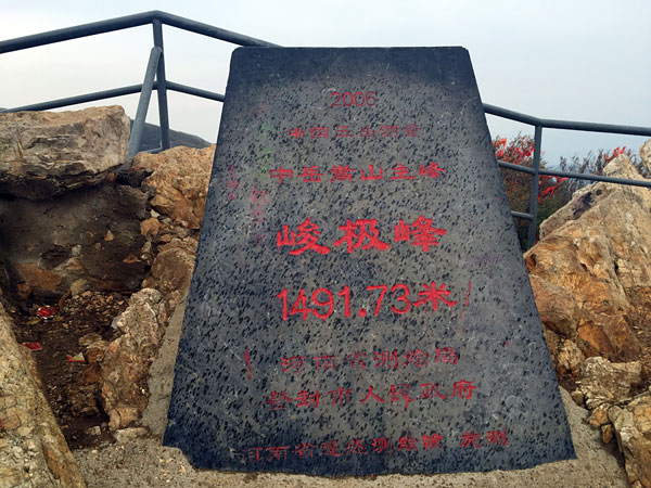 海拔1491.73米,終于登上了嵩山太室山主峰——峻極峰,這兩個小朋友爬山很賣力,一直排在我們隊伍的第一名,給他們點24個贊!