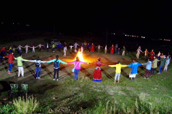 晚上熱情洋溢的草原篝火晚會